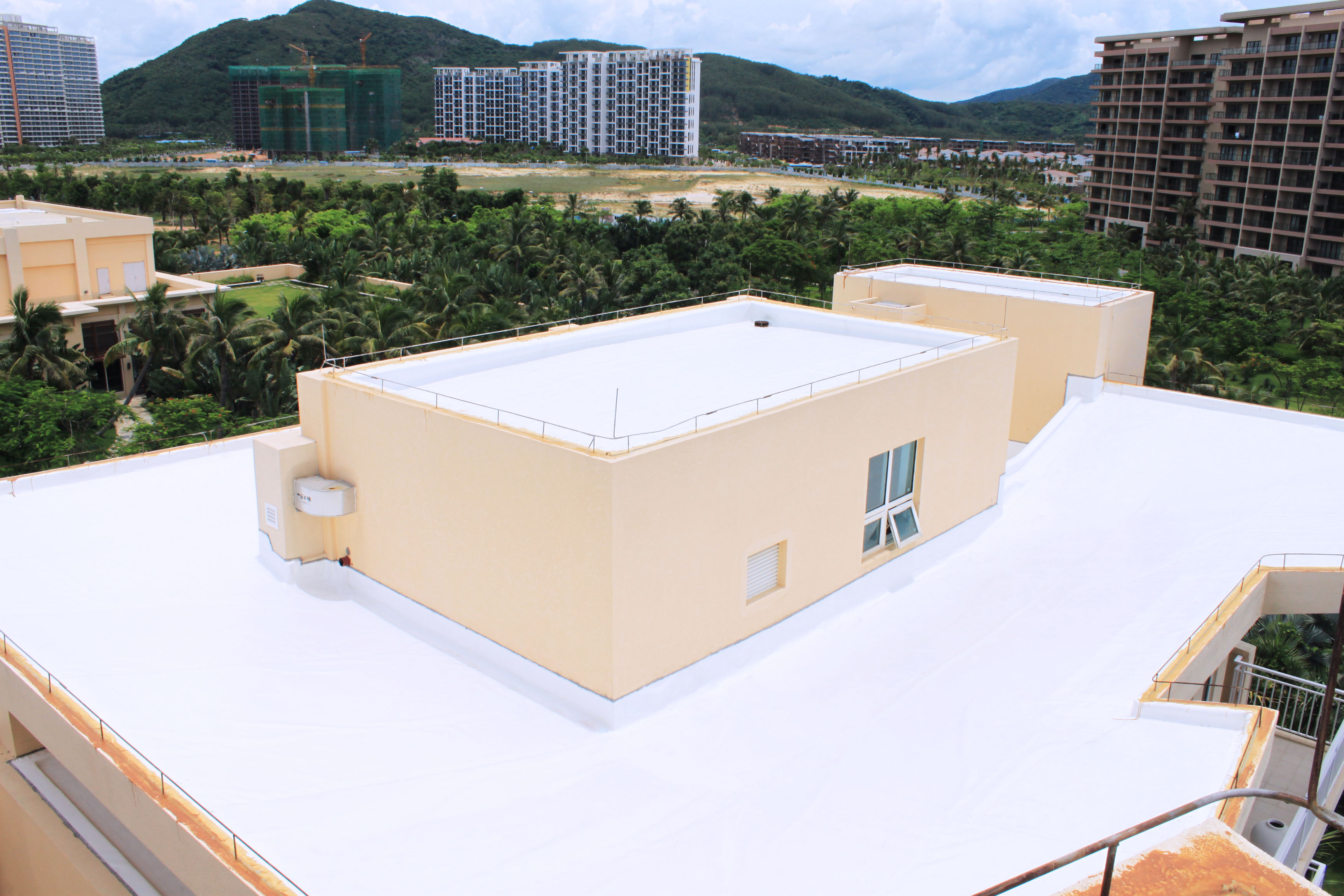 神州半岛三面环海,一面接陆,面积24平方公里,东南长8.7公里,西北宽 2.7公里,东依牛标岭,南濒浩潮南海,西靠老爷海港口,北临东澳港。平均气温为24.4摄氏度,年日照时间达290天,气候温和,四季如春,是一个四季如春的阳光型半岛,也是海南省万宁市一处大型旅游风景名胜区,该项目为神州半岛一高档星级酒店。屋面防水面积约11000㎡。