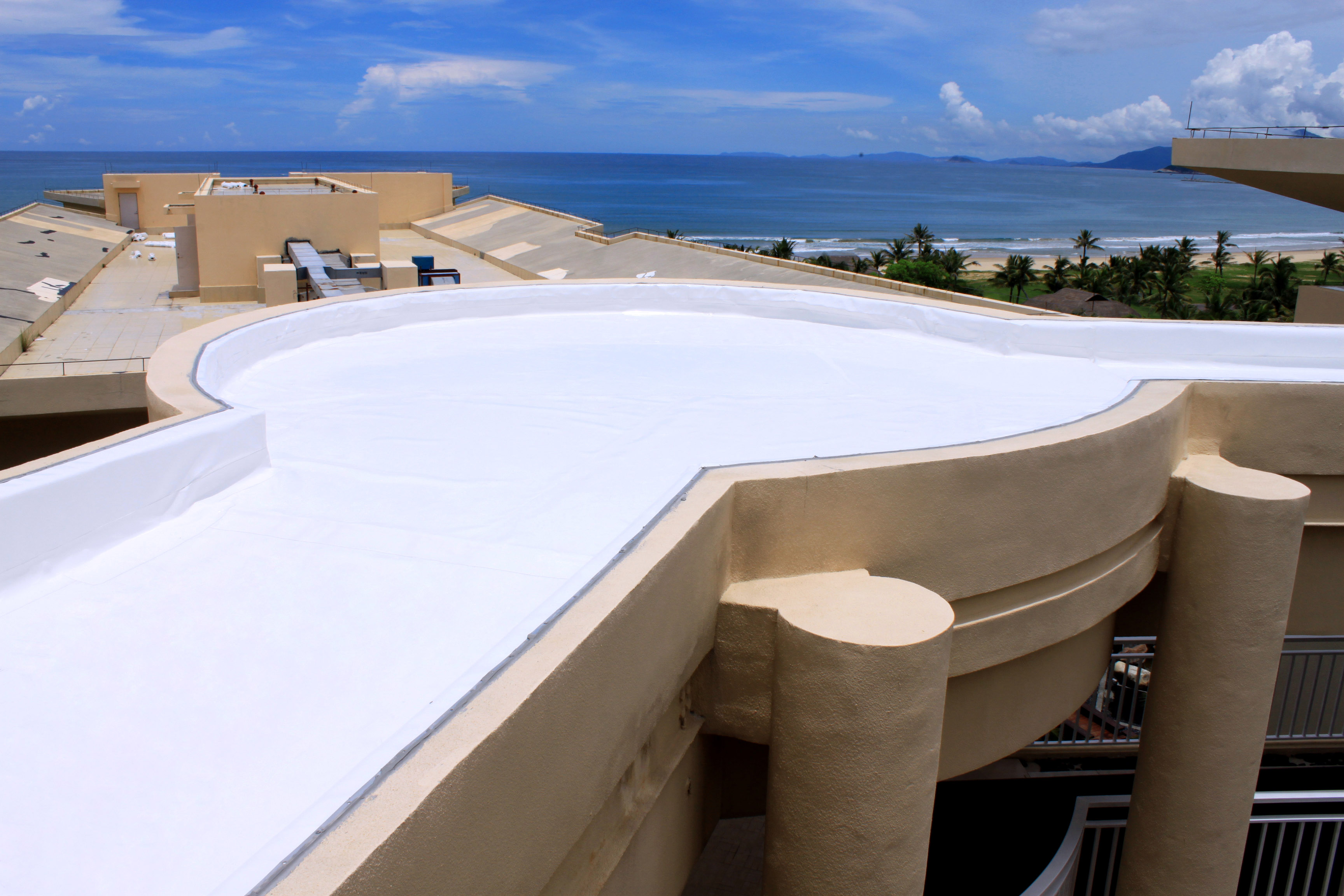 神州半岛三面环海,一面接陆,面积24平方公里,东南长8.7公里,西北宽 2.7公里,东依牛标岭,南濒浩潮南海,西靠老爷海港口,北临东澳港。平均气温为24.4摄氏度,年日照时间达290天,气候温和,四季如春,是一个四季如春的阳光型半岛,也是海南省万宁市一处大型旅游风景名胜区,该项目为神州半岛一高档星级酒店。屋面防水面积约11000㎡。