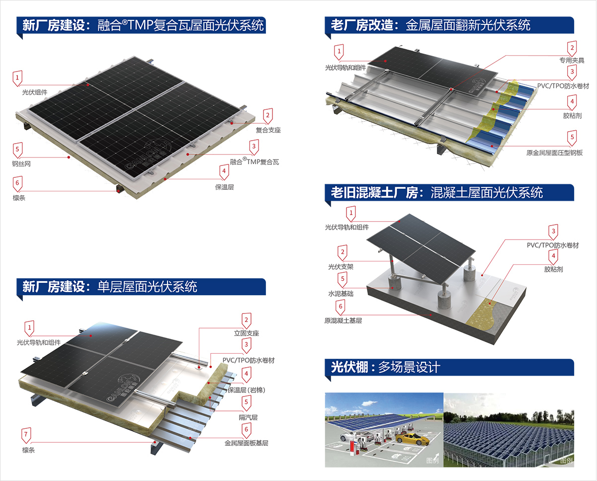 凯伦高分子产业园推出“融合光伏屋顶系统”,将凯伦单层屋面系统与光伏发电系统有机结合,全新的功能型屋顶系统。该系统可提供至少25年超长使用年限,有效解决传统光伏屋面上防水等构造层使用寿命与光伏组件生命周期不匹配的行业痛点。
