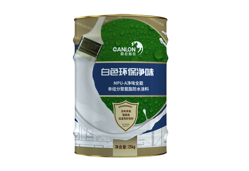 MPU-A净味全能单组分聚氨酯防水涂料是一种无溶剂、极低挥发性有机化合物、环保型的聚氨酯防水涂料。该产品主要由异氰酸酯和聚醚多元醇构成,配以特殊助剂、填料和颜料,在先进的反应釜式工艺设备中经过聚合反应制成。使用时将其涂覆在防水基层上,与空气中的湿气发生反应,在基层表面形成连续、无缝的橡胶特性涂膜防水层。