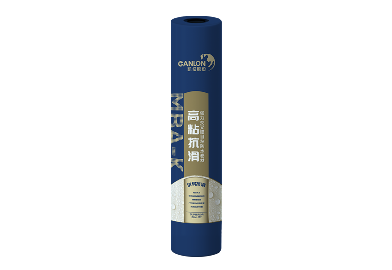 MBA-K高粘抗滑强力交叉膜自粘防水卷材,由特殊处理的强力交叉层压膜、自粘胶料和隔离膜构成,是一种拉伸强度和撕裂强度优良的自粘防水卷材。使用特殊处理金色膜面,在其使用过程中具有优异的抗滑移性能,同时该卷材具有良好的自愈性和较强的撕裂强度,有效避免钉眼部位的渗漏。
